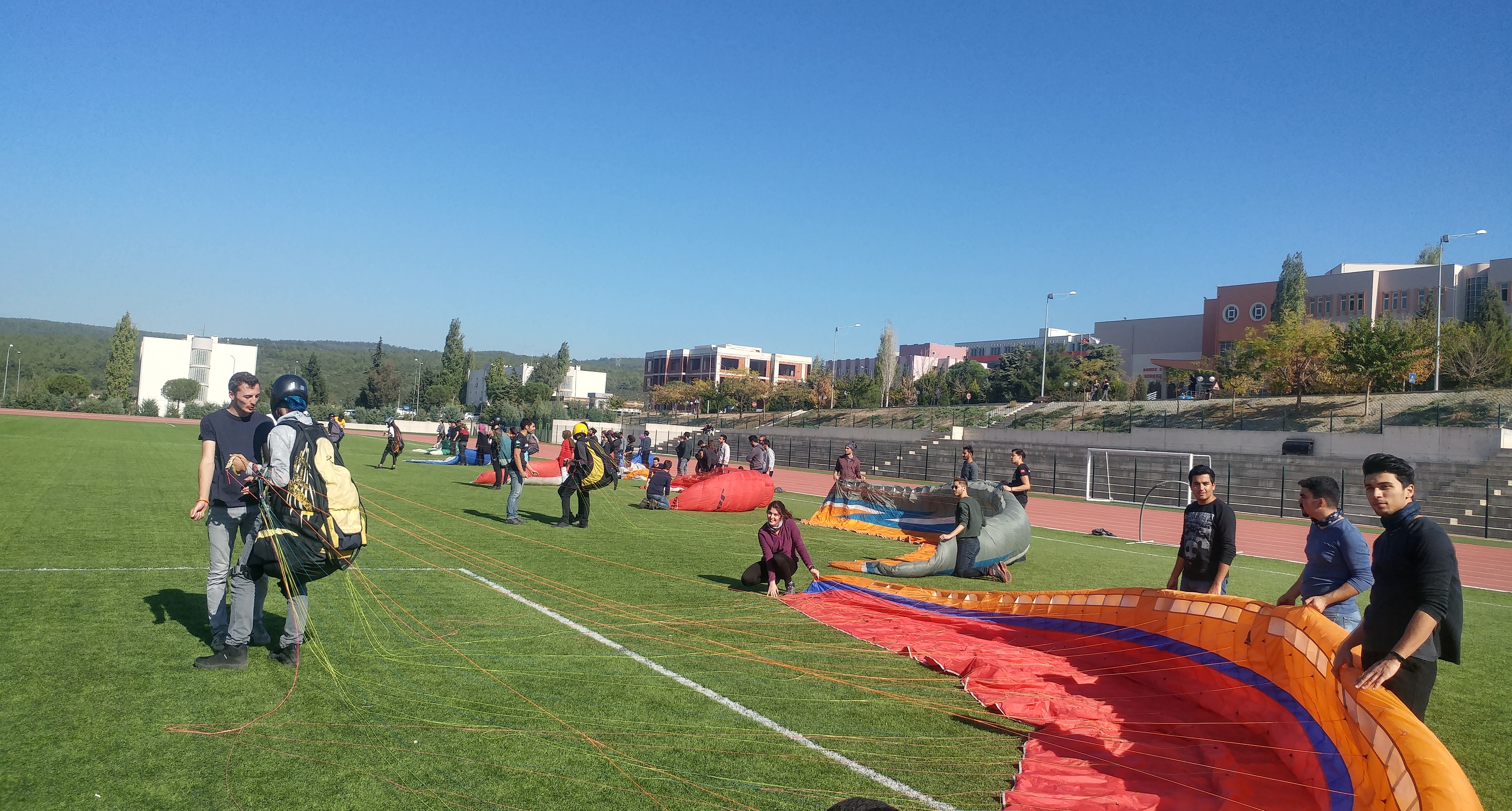 Biz 1996 yılından bu yana yamaç paraşütünü Dokuz Eylül Üniversitesi öğrencisine ve kadrosuna öğreten, yamaç paraşütü sporunu daha iyi yerlere taşımayı amaçlayan, her yıl yeni kişileri bu sporla tanıştıran ve uçmaktan çok zevk alan bir öğrenci topluluğuyuz.